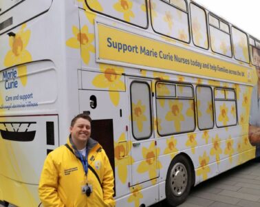 A Marie Curie bus has arrived at MediaCityUK, offering free help for anyone with concerns about terminal illness as well as information about how they can support the charity.