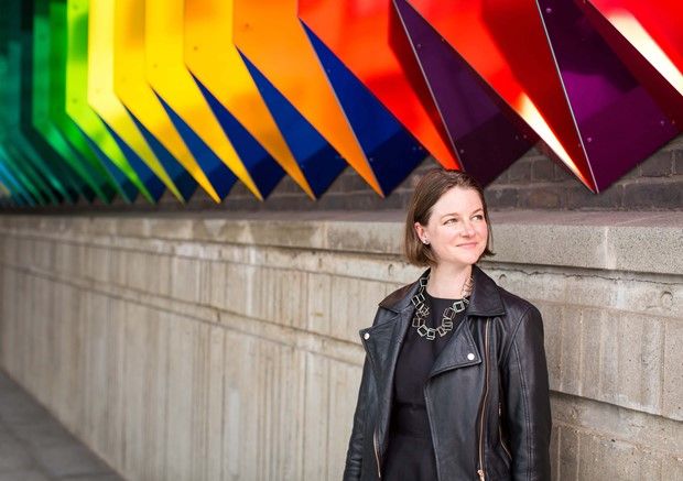 I am looking forward to seeing the work glisten and throw out mesmerising sundial colour ways onto the quayside. I hope that it brings joy to those who pass nearby and through it. This walk-through structure encourages visitors to look at their surroundings in a different light. Making their way inside the multicoloured corridor people see the world around them transformed by multicolour. The barrier between the outside and inside creates a multi-coloured striped cloak and distortion in an array of different hues, transforming the usual colourations and appearance of the outside environment.” – Liz West