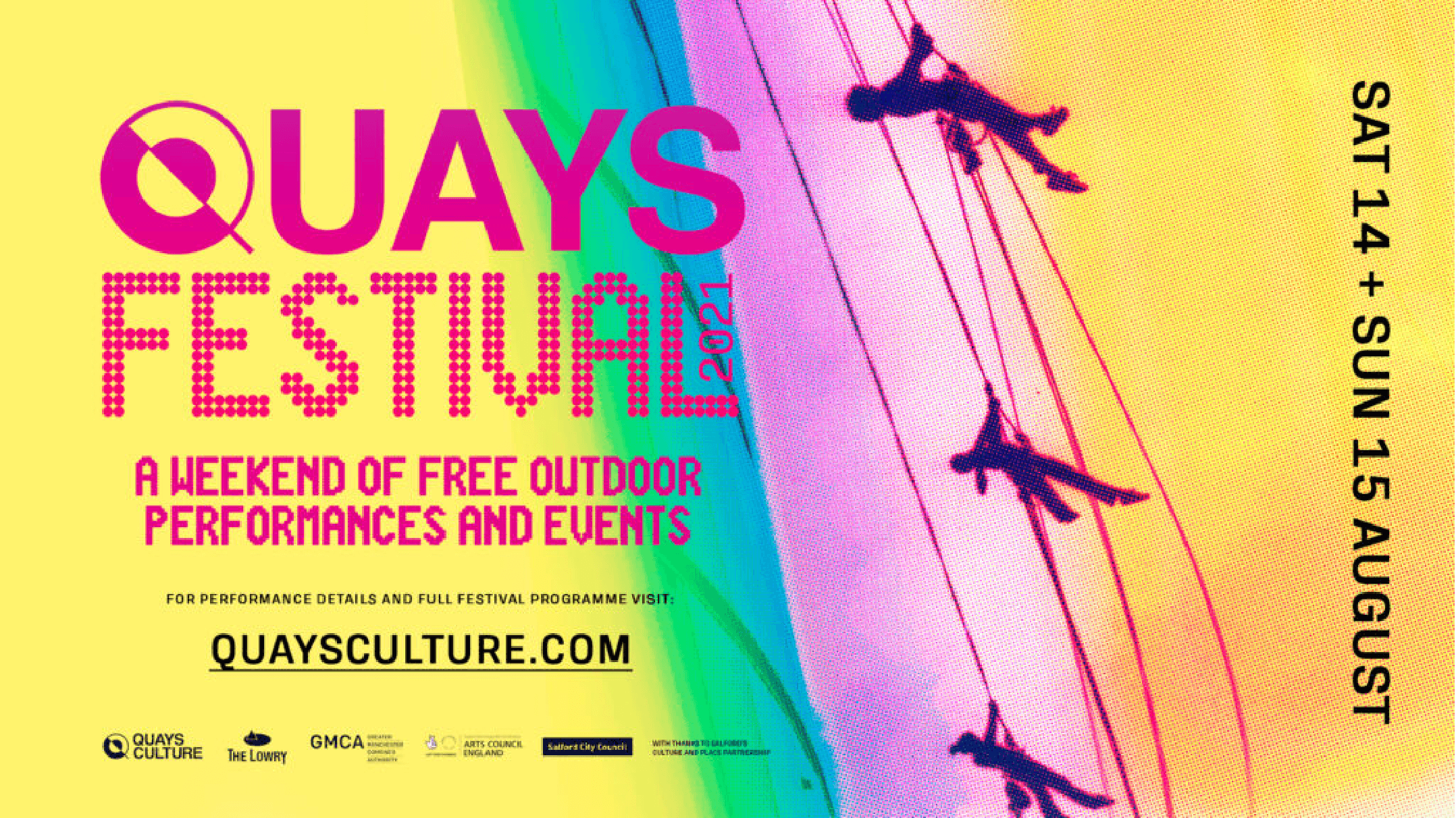 As theatre auditoriums return to capacity and people enjoy shared experiences together once again, Quays Festival launches a bold programme of performances and events set to transform Salford Quays across the weekend of Sat 14 & Sun 15 August.
