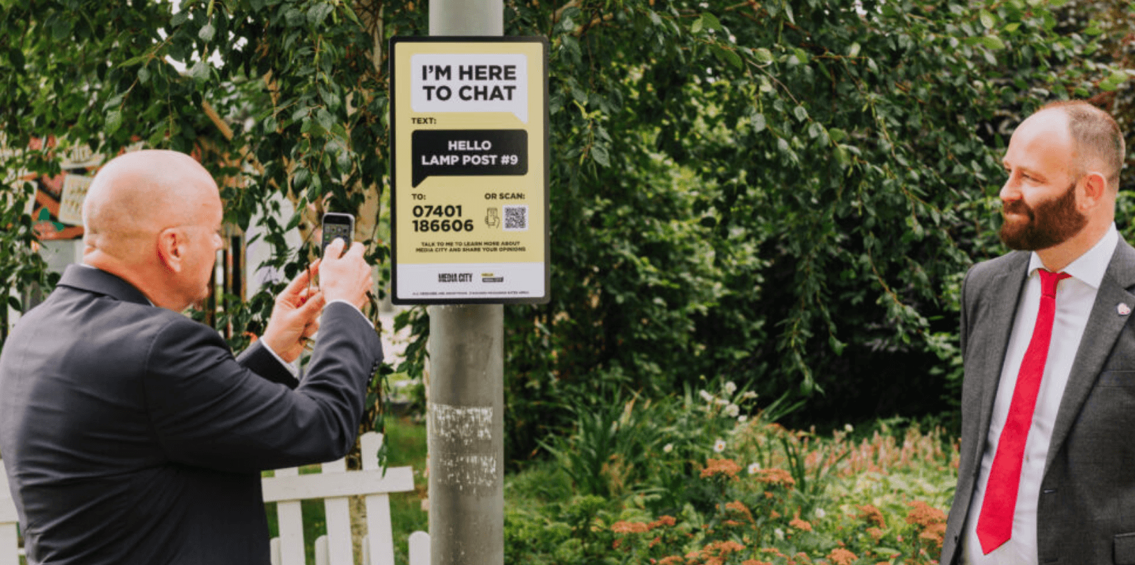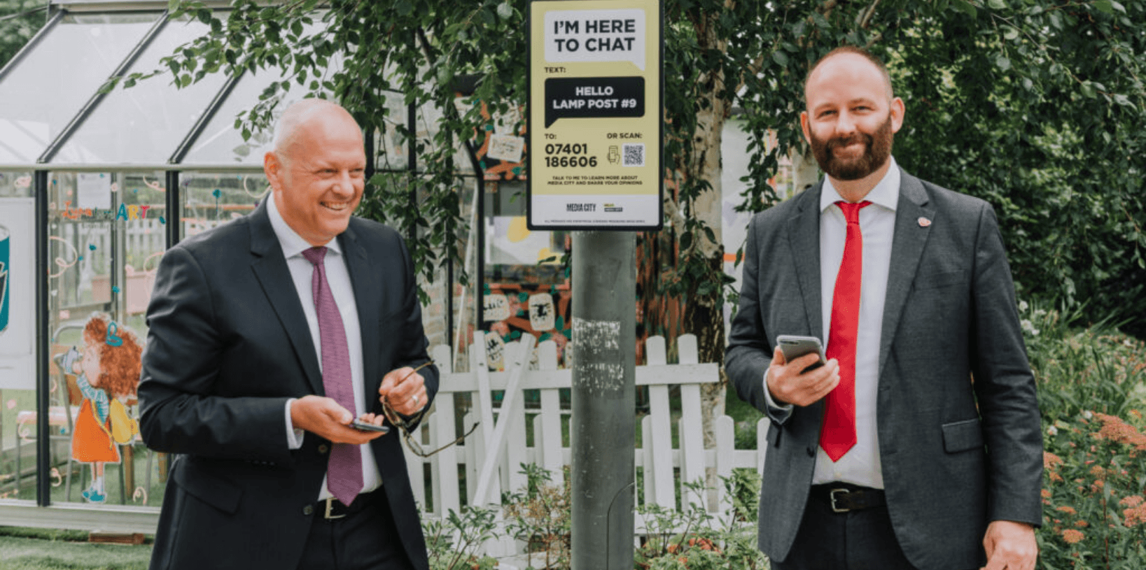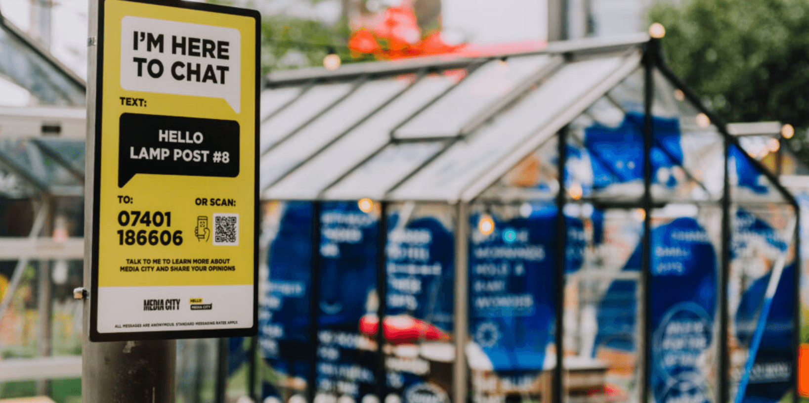 If communicating with a lamppost, bench and even a flower planter seems strange, it’s a concept set to become a reality at MediaCityUK as a ground-breaking pilot scheme is rolled out which will enable the public to interact with everyday objects via text message.