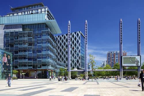 MediaCity is easy to reach by bike or on foot using a network of direct, safe and attractive cycling and walking routes. Located along the Irwell River Park, many routes utilise the Manchester Ship Canal, the River Irwell and the Bridgewater Canal to provide safe traffic-free journeys to MediaCity.